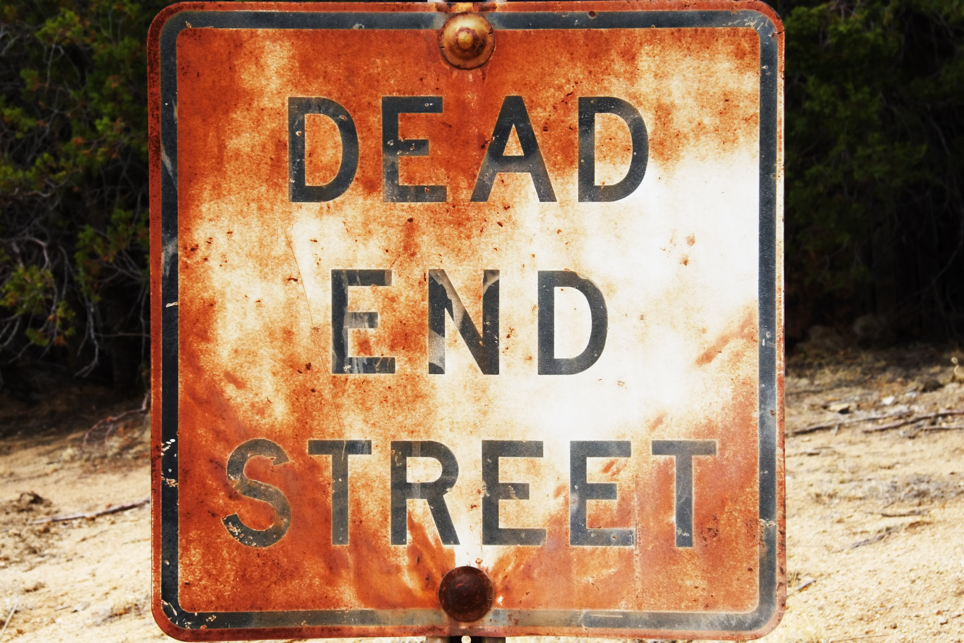 Rusted and weathered Dead End sign.