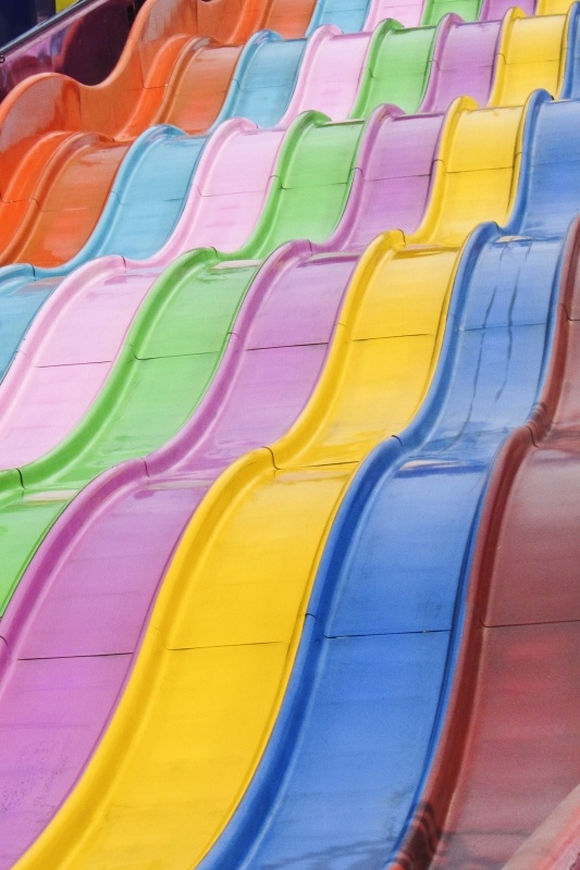 a colorful slide in a theme park