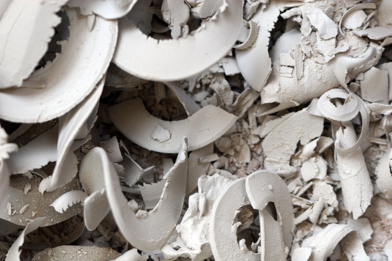 Clay trimmed from pots in a ceramics studio